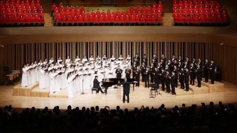 音乐会的曲目编排兼顾艺术性、念念想性、时期性与全球性。上半场以钢琴伴奏齐唱体式,呈现了混声齐唱《春风十万里》《看山看水看中国》等改编自春晚的歌曲,融入二胡、打击乐等民族元素,让经典旋律抖擞新声。
